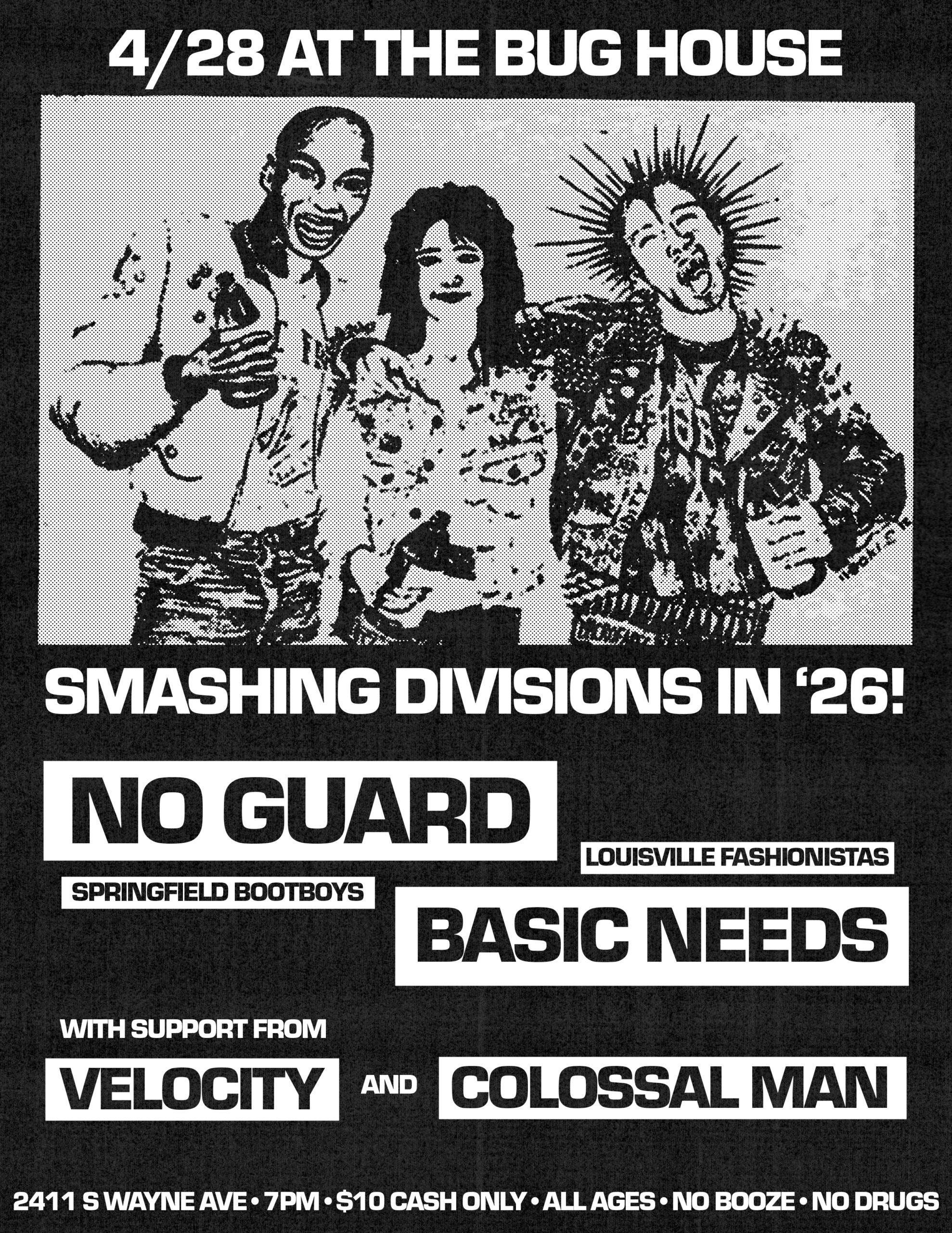 All Ages, 7PM, $10 Cash Only PWYC, No Drugs, No Booze, No Bullshit